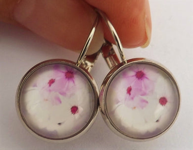 Pink & Purple Floral Dome Earrings on Lever back hooks