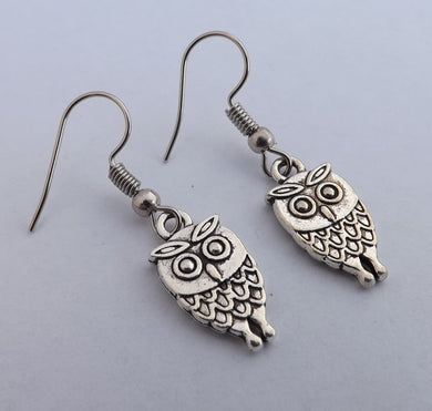 Small Owl Silver Tone Earrings