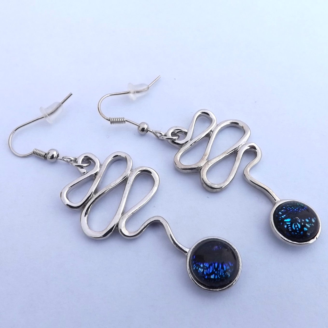 • Load image into Gallery viewer, Blue & Silver Tone Dichroic Drop Earrings