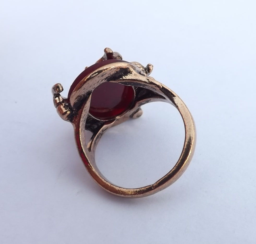 • Load image into Gallery viewer, Chunky Red & Gold Ring with Leaf Decoration with Faux Diamonds  (size 10)