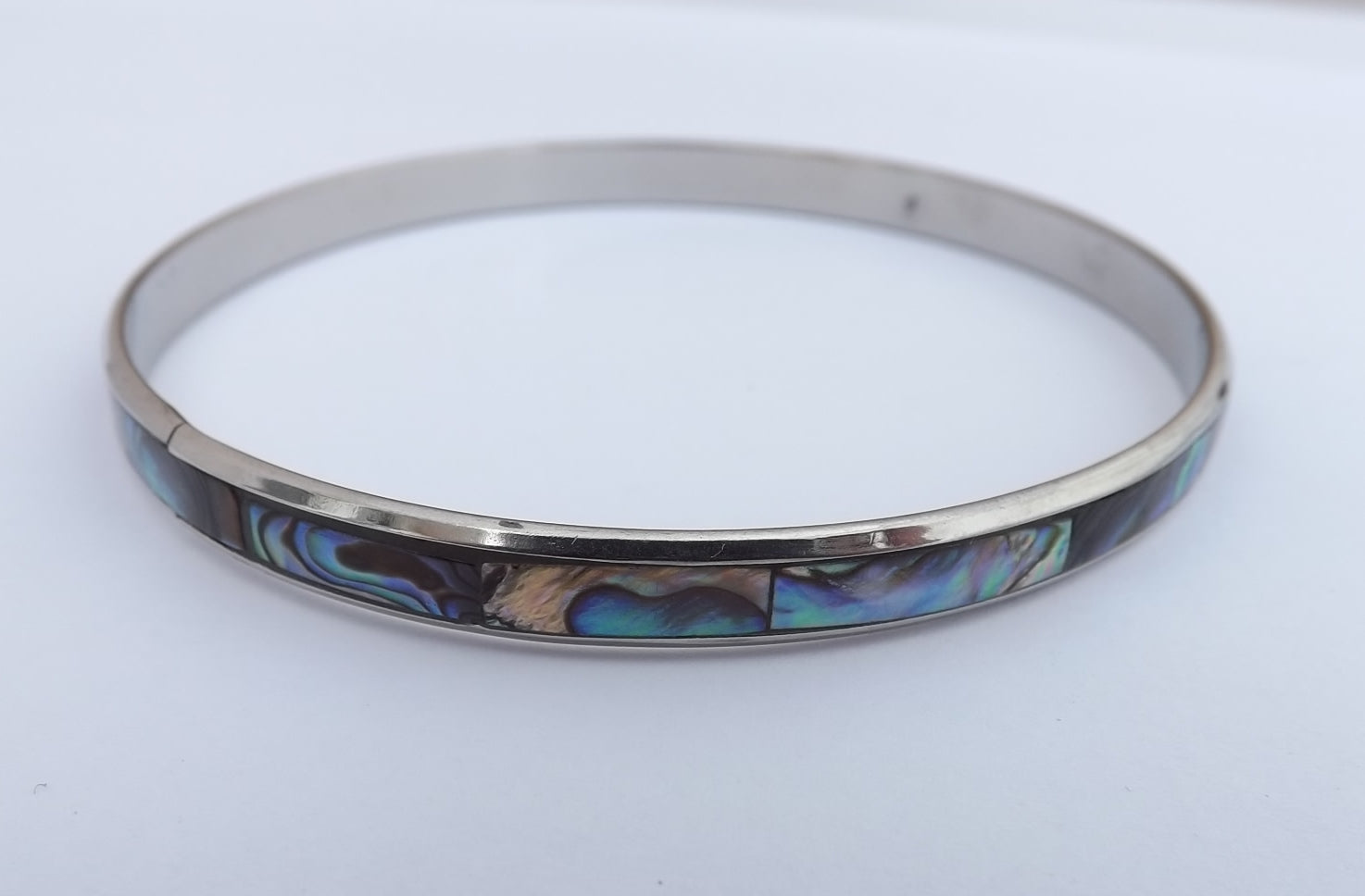 • Load image into Gallery viewer, Paua & Silver Tone Bangle Bracelet