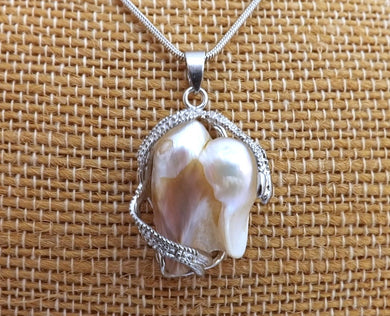 Freshwater Pearl & Silver Tone Pendant Necklace