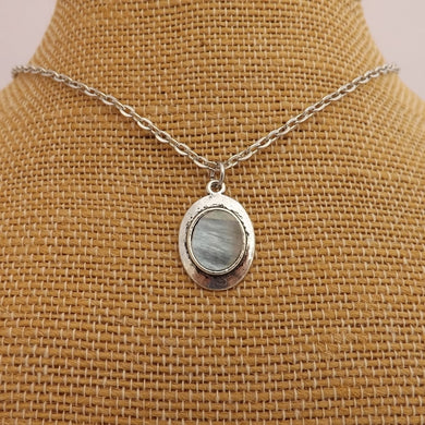 Grey & Silver Tone Oval Pendant Necklace
