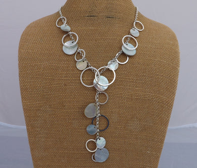 Mother of Pearl Shell & Silver Tone Rings Pendant Necklace