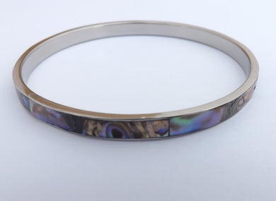 Fine Paua Shell & Silver Tone Bangle Bracelet (3 size options)