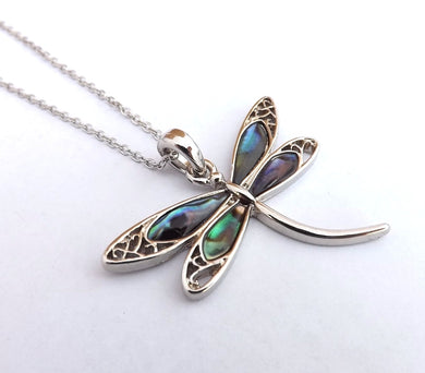 Paua & Silver Tone Dragonfly Pendant Necklace