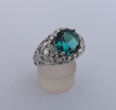 Teal & Silver Tone Costume Ring (size 10)