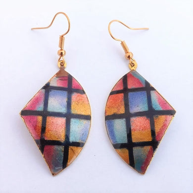 Pink, Blue & Gold Tone Vintage Enamel Earrings