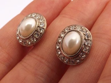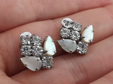 White Mother of Pearl & Diamantes Vintage Clip On Earrings