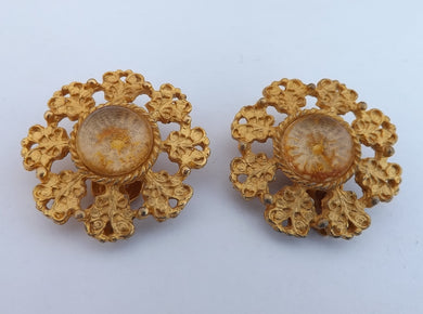 Clip On Earrings Blue & Gold Tone Large Plastic Retro