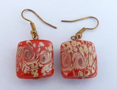 Vintage Orange & Cream Glass Bead Drop Earrings
