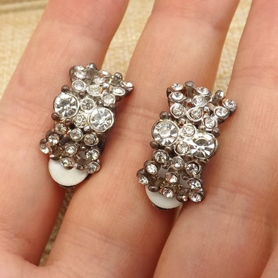 Worn Rhinestone & Silver Tone Vintage Clip on Earrings