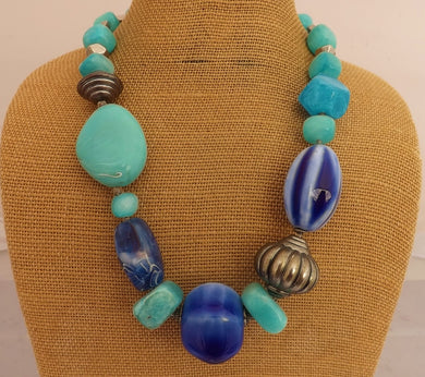 Blue & Tuquoise Coloured Acrylic & Ceramic Chunky Bead Necklace