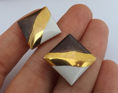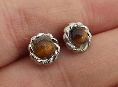 Vintage Brown Cats Eye & Silver Tone Stud Earrings