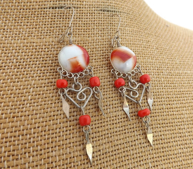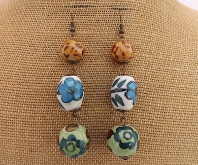 Green, Brown, White & Blue Ceramic Beads Drop Earrings