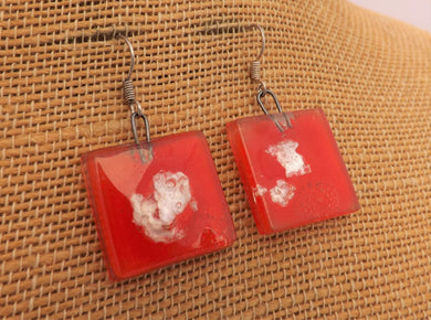 Light Pink Glass in Sterling Silver, Rectangle Drop Earrings