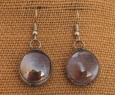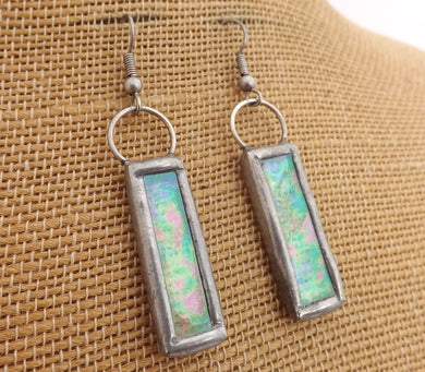 Purple & Green Lustre Stained Glass Style Drop Earrings
